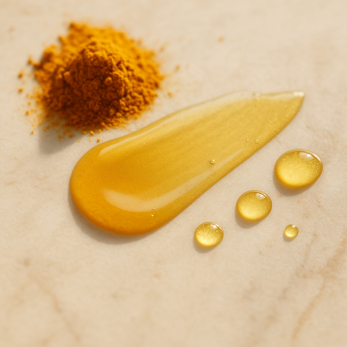 Answer 1: The serum contains kojic acid and turmeric extract. Kojic acid helps lighten dark spots and promotes an even skin tone by inhibiting melanin production. Turmeric, known for its anti-inflammatory and antioxidant properties, revitalizes the skin, combatting blemishes and giving a natural glow.